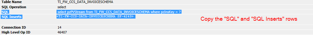 Copy the SQL and SQL Inserts rows from the tracer as in the example, paste them in the "Tracer output" text area and click on |